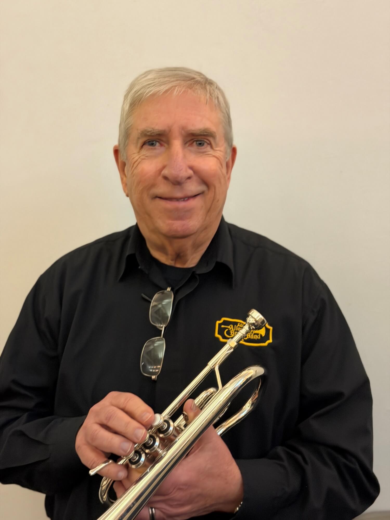 Mike Lockman has been a member of the Allegheny Brass Band for a little more than seven years. He started off playing Eb cornet. When there was a need for someone to fill the Eb Soprano Cornet chair Mike stepped up to meet the challenge. Since then Michael has moved to the second row of the cornet section. He is a life long musician. He started trumpet when his dad purchased him a used trumpet for $50.00 when he was 10 years old. Mike is a graduate of The Mary Pappert School of music at Duquesne University. He holds a BS M Ed and MM.Ed. Mike has studied trumpet with Charles Hois, Edwin Shiner, and most recently Chad Winkler of the PSO. Mike recently retired from the Canon McMillan school district after directing numerous award-winning bands within the district for 35 years. Mike has performed with a variety of ensembles in the Pittsburgh area. Presently he is a member of the Pittsburgh Philharmonic Orchestra and the West Hills Symphonic Band in addition to the Allegheny Brass Band. Previous performing venues include the Pittsburgh Symphony (side by side) Pittsburgh Metro Italian Band, numerous big bands, and solo appearances with the Washington And Jefferson Wind Ensemble. A recent stint with the rock band “Brass Impact” was most gratifying. There he could play as loud and high as possible and the audience loved it. A trumpet player’s dream. Mike also accepts freelance playing engagements as they come up. Two of his children are musicians in their own right. Ashley a flutist and Brittany an Oboist. Michael resides in Peters Township.